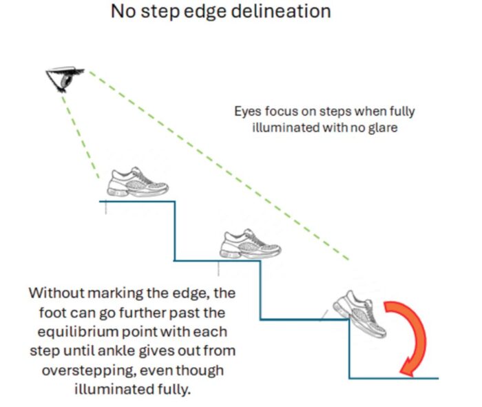 High contrast, Maximum Safety – Studies show that maintaining at least 50% contrast at the stair edge increases heel clearance, improves gait, and significantly reduces fall risk. Nothing performs—or looks—better in low light than Light Tape®.